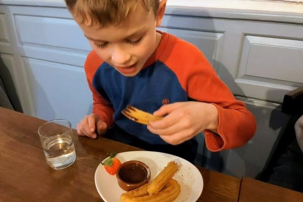 For desserts the boys had churros (spanish doughnuts with chocolate dip, what’s not to love?!) and my daughter had good old Cheshire Farm Ice Cream! Us grown ups shared a lovely crema catalana with homemade shortbread.