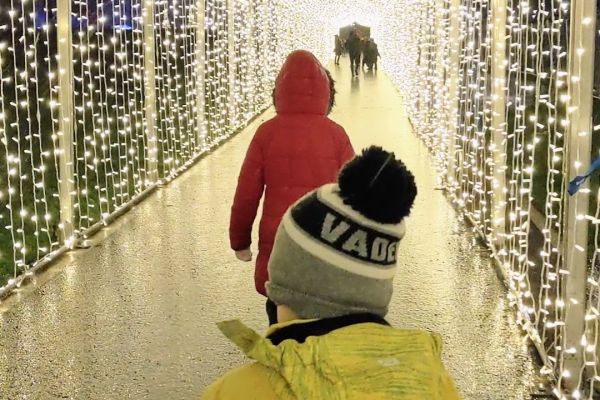 Christmas Lights Trail: We started off by doing this 1.2 mile trail around the grounds of Bolesworth. It runs along the lakeside, through the woods with loads of coloured lights and animal sculptures. Halfway around there are some reindeer to see and it ends with a really cool light tunnel. It’s just the right length for little legs.