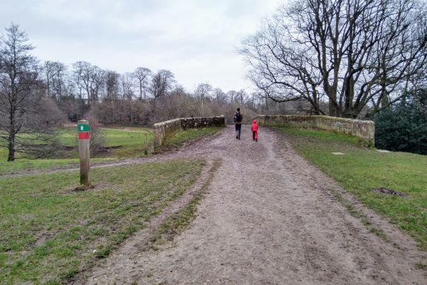 This walk starts at Felin Puleston car park (no charge). Turn left out of the car park, walk down the road then just as it bends, walk straight onto the footpath, cross over the small wooden footbridge and turn left entering the grounds of the estate.