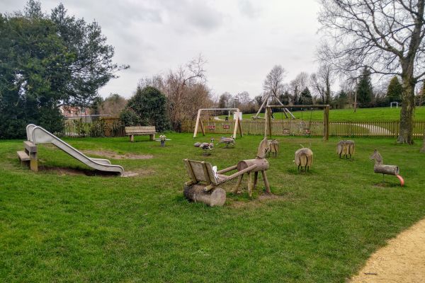 The thing I like best about this park is that the playground is fenced off so little ones can’t escape onto the playing fields easily, always high up on my priority list with my youngest! Inside there’s a fantastic mix of play equipment and all ages will be happy which is not something you could say for lots of playgrounds.