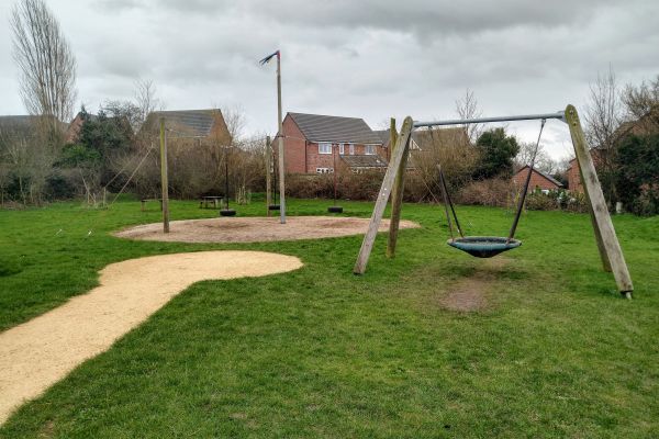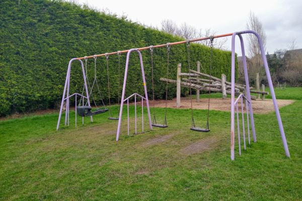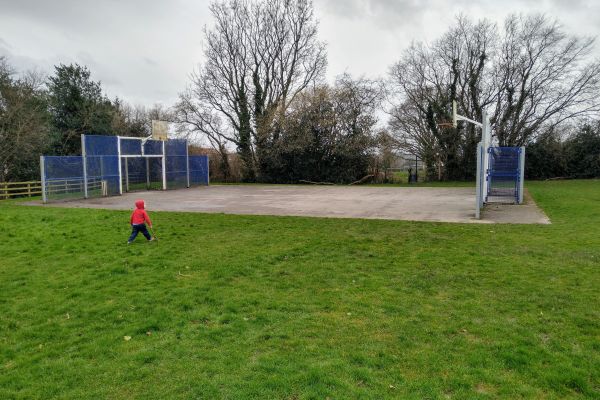 There’s a large field with a cycle trail all the way around it so you often see little ones on scooters and bicycles. There are goalposts on the field should a game of footie take your fancy and a basketball court, although this is looking a bit tired now but still playable on.