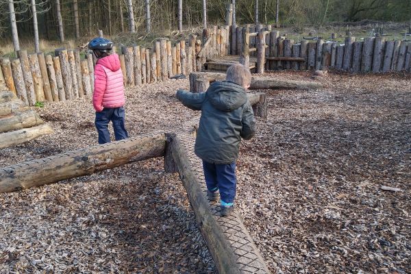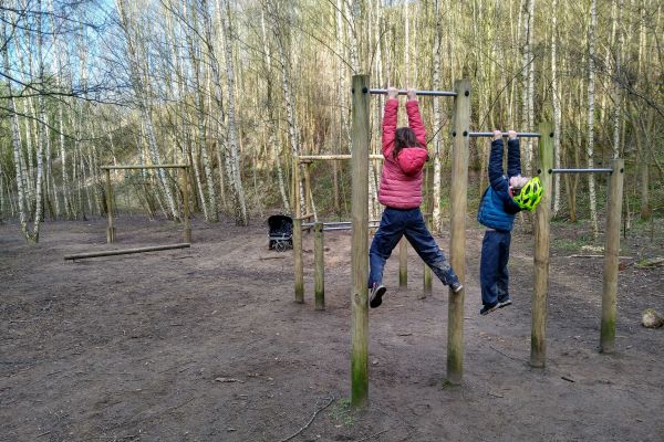 There is an adult exercise area (it isn’t shown on the information board but can be found on the blue trail just before the steps) which again we spend a long time at, with the children laughing at our inability to do the monkey bars!