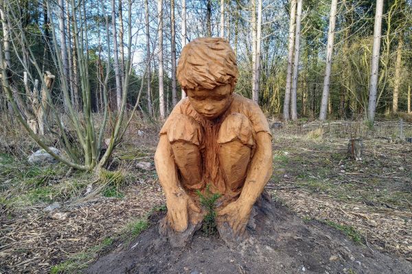 Next to the board, you’ll also see a carved statue of a Quarryman who welcomes visitors. This is the first of many fantastic wood carvings you’ll see on the walk.