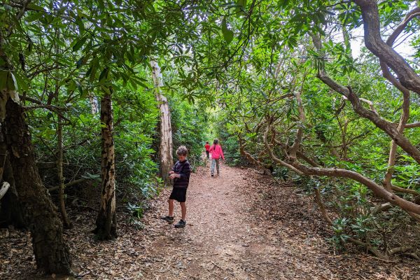 From here you head downhill to the Tea Tents Picnic Area, this large clearing was where they used to hold tea dances back in the day. There were a couple of rope swings when we visited so no need to explain what we spent most of our time doing here!