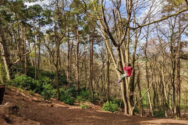 It’s a 70 acre site of woodland and heathland, with some amazing views, sandstone quarries, a hermit cave, beautiful trees and a few rope swings dotted about.