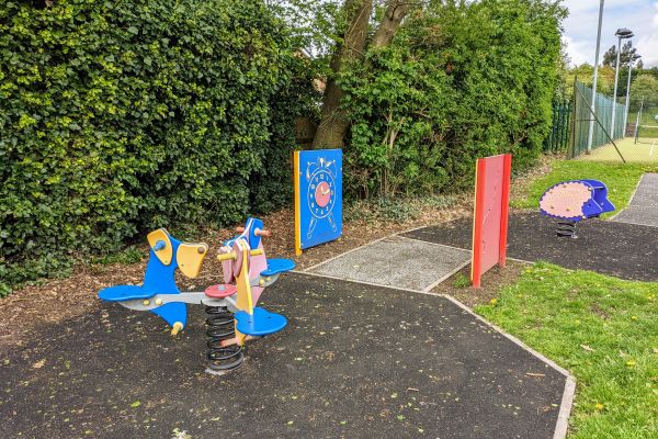 The younger children’s area is gated off (big points for that!). There’s the ever present slide, seesaw, roundabout and benches, but also 2 climbing frames, one is for the very little ones and the other is more challenging with some trickier climbs up it.