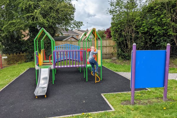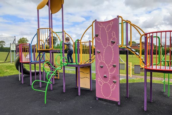 If, like me, you have both younger and older children then I think Tarvin park is one of the best to visit. It’s got fantastic play equipment for the older ones, probably the best of any park around Chester but there’s also an enclosed play area for the little ones. The other added addition is the very toddler (and pushchair) friendly ‘Grogan’s Walk’, a narrow belt of woodland south of the park and just a five minute walk away, so together you can easily spend a couple of hours here.