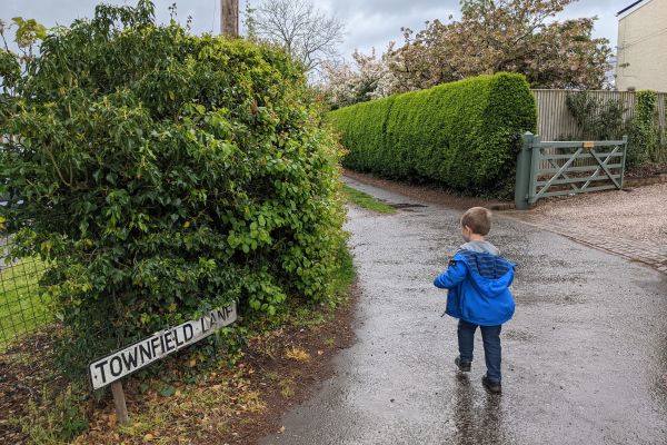 To find it, head out of the playground car park through the white gates and turn immediately left into Townfield Lane.