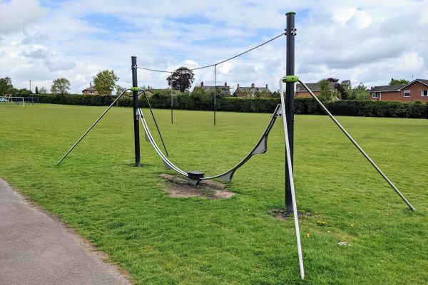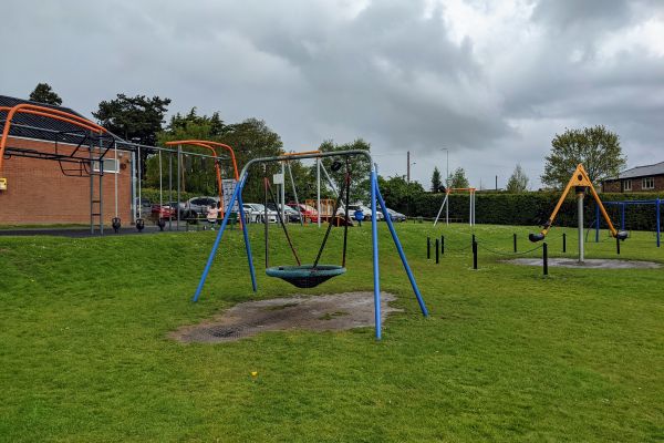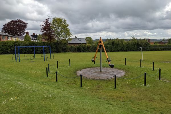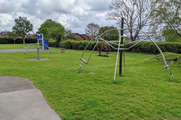 Firstly, if you want to go back to the playground and enter the park at the southern end (where the younger kids play equipment is) then you can go through the gate, turn left and follow Hockenhull Lane for about 300m then turn left into Crossfields, then right into Meadow Close where at the end of this road you’ll see a path on the left going into the back of the park. It’s only about a 5 minute walk and the OS Map in the Info Bar shows this route.