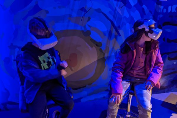 After the film there’s a lovely drawing area for the kids where they can produce their masterpiece and scan it so that it appears on the digital screen above them.