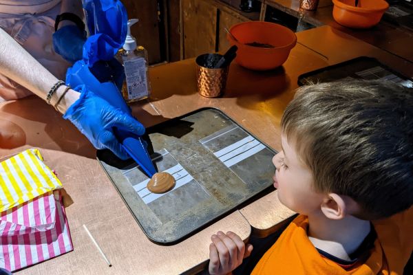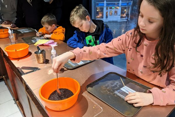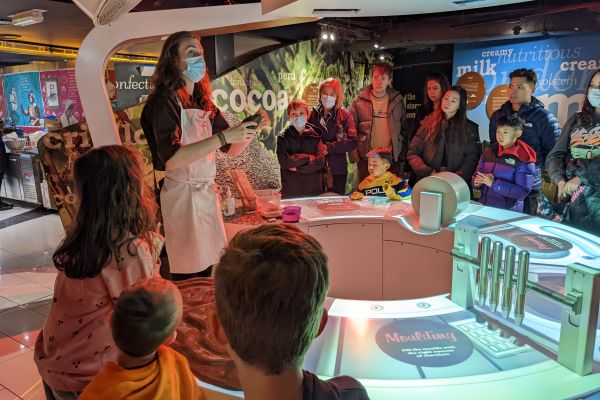 The group tour lasts about an hour and is made up of a number of parts. To begin with, the tour guide gives an introduction and hands out a sample bag containing chocolate goodies which relate to things you’ll learn about on the tour. Following that we went into several different rooms learning about the origins of chocolate from Mesoamérica, the history of chocolate in York (which cleverley has some talking confectioners interacting with each other) and an exhibit on how chocolate is made which the kids can get involved with. It’s all presented in a very clever and engaging way and our tour guide was very knowledgeable and enthusiastic. At the end we all got to make chocolate lollies which we enjoyed and they tasted AMAZING!! A chef also did a demonstration making chocolate truffles which I was first in the queue for sampling when he’d finished them!