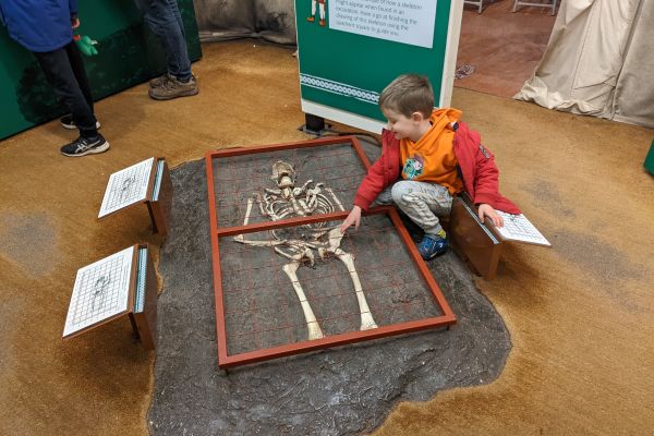 After that you’re taken into the digging area where all sorts of things are buried under the mess free gravel (skeletons, pottery, coins etc) There is a Victorian, Medieval, Viking and Roman pit and the children are given little trowles to get digging with which they absolutely loved. The objects are stuck to the floor so you can’t physically pick them up, but that didn’t matter to them. We went at 3pm and luckily had a small group with only 1 other family so if you can I would book a time slot later in the day to hopefully get a quieter group. All in all we were there for just over an hour.