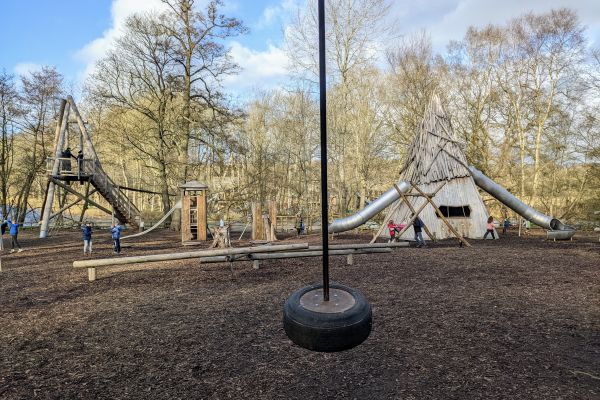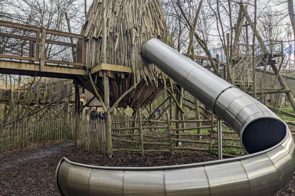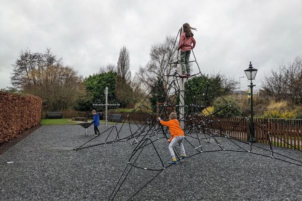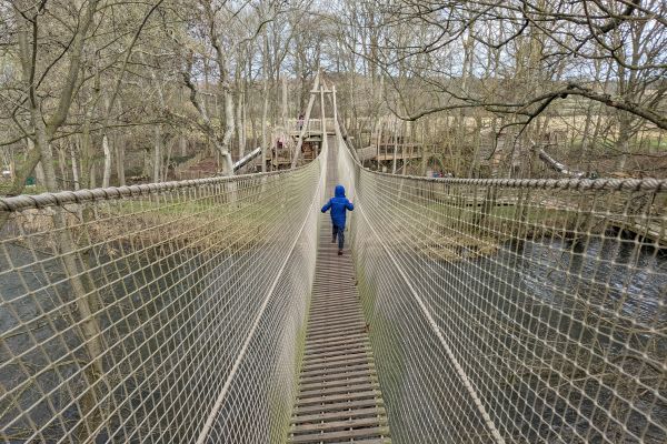 On the other side of the bridge, the Adventure Playground has more of your usual play equipment with climbing frames, swings and slides.